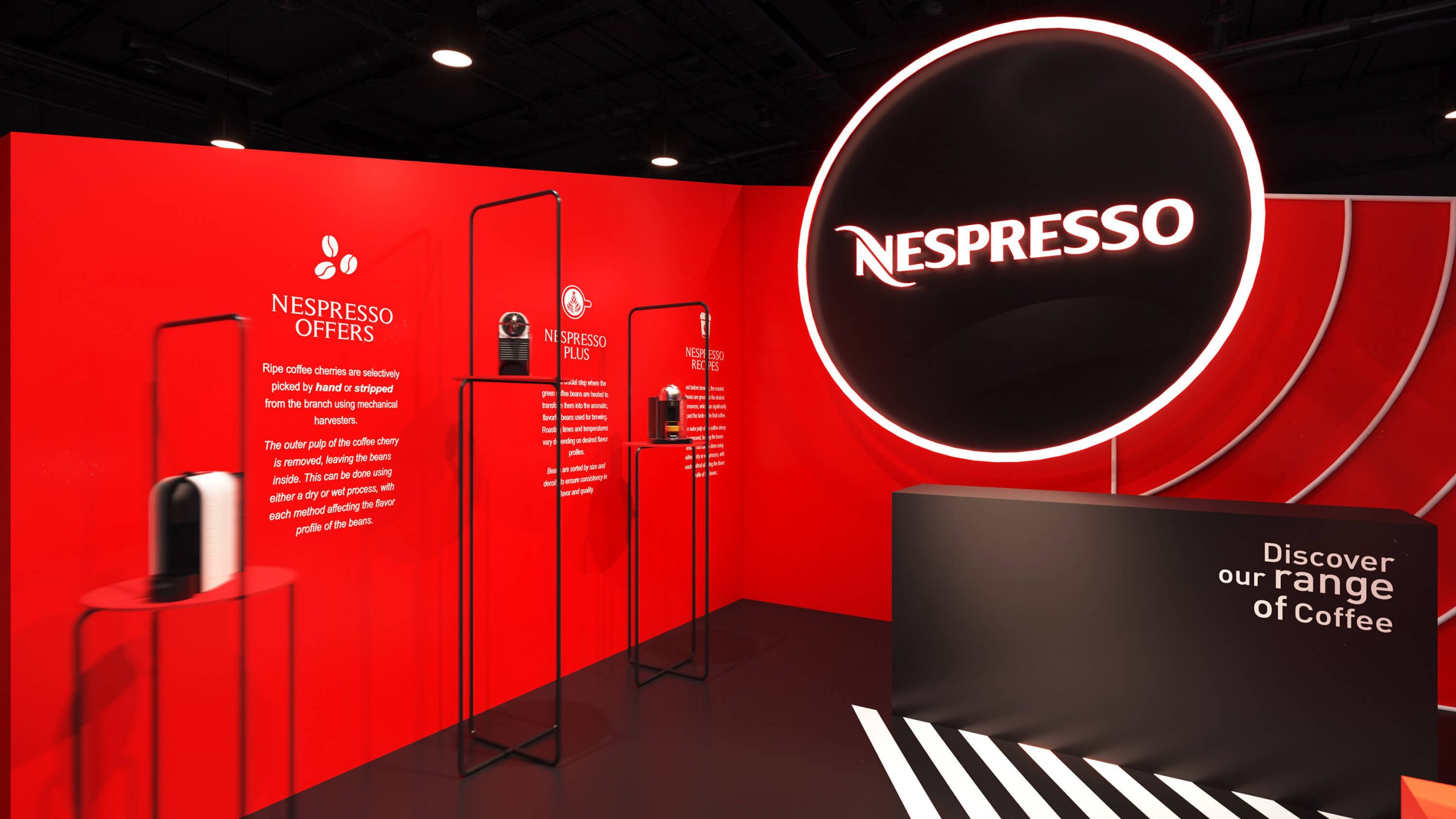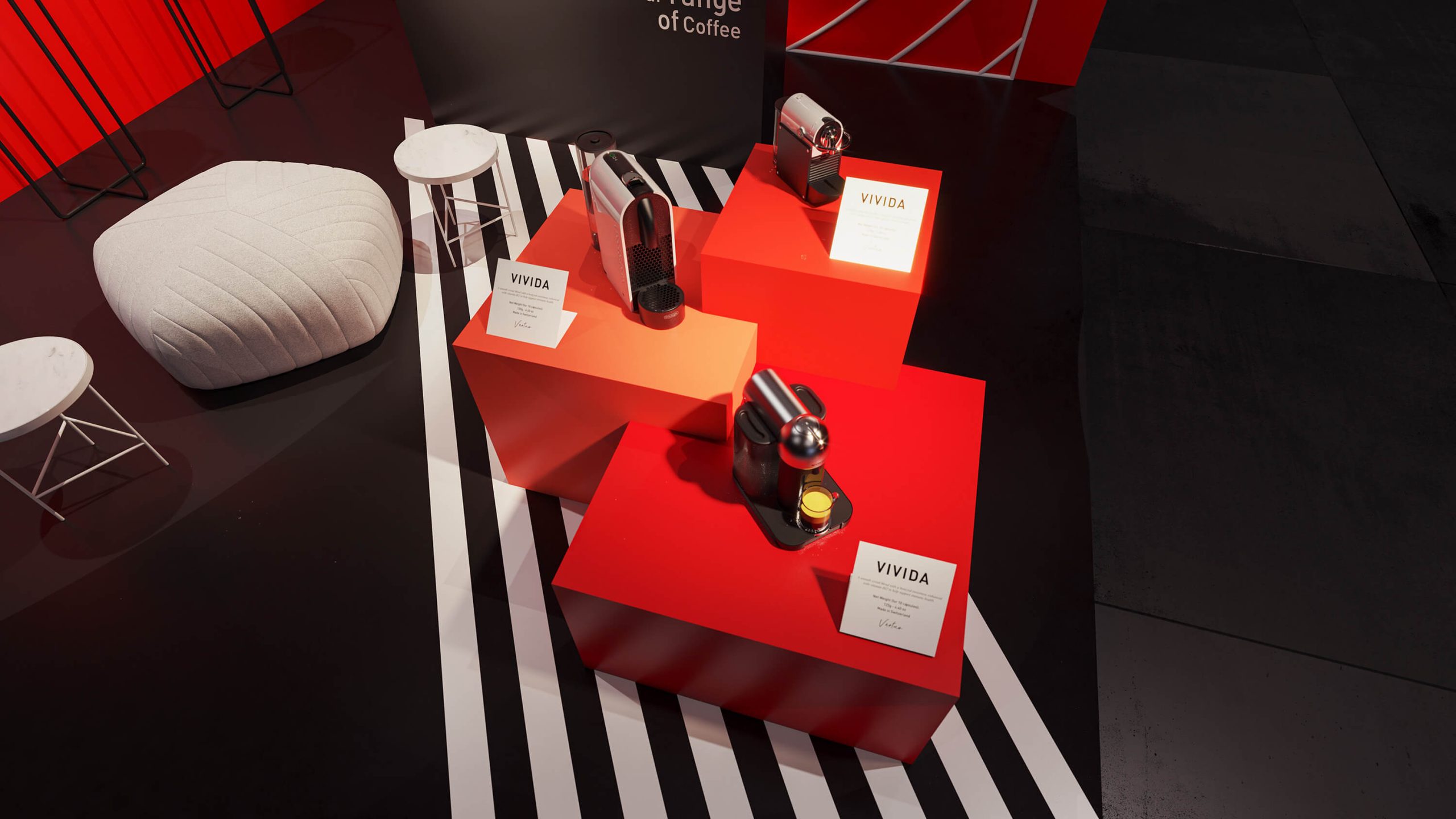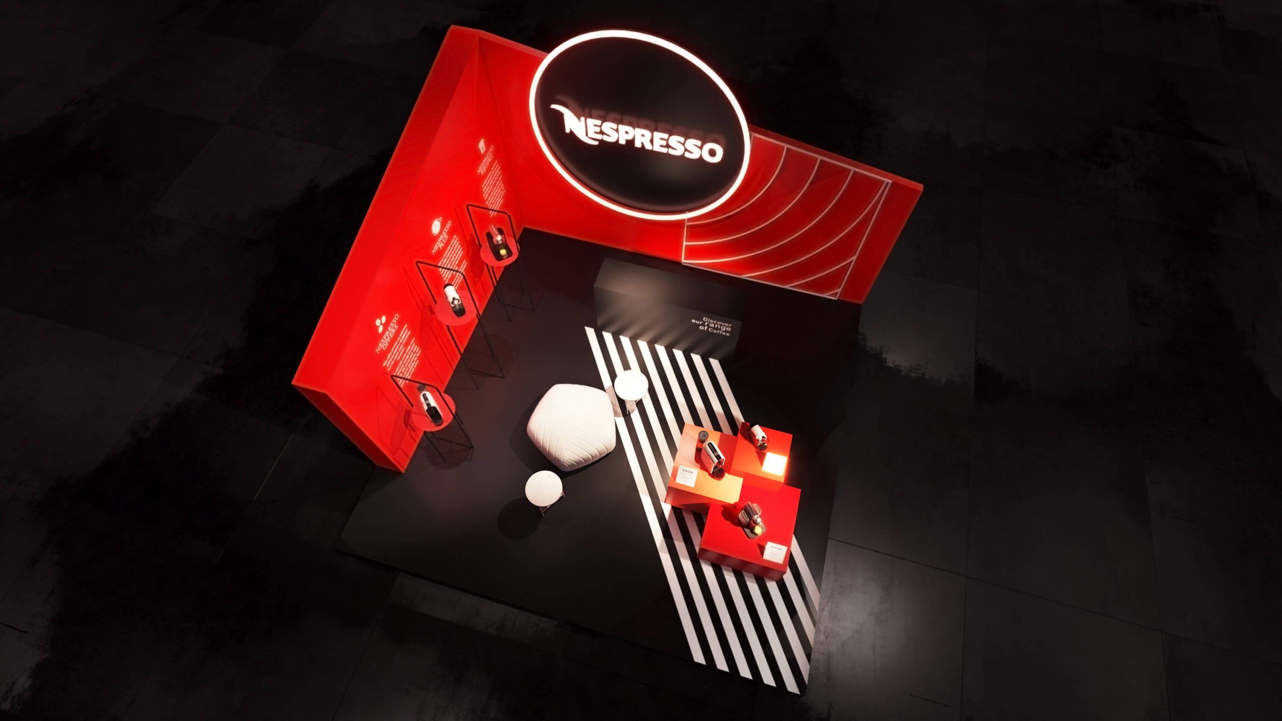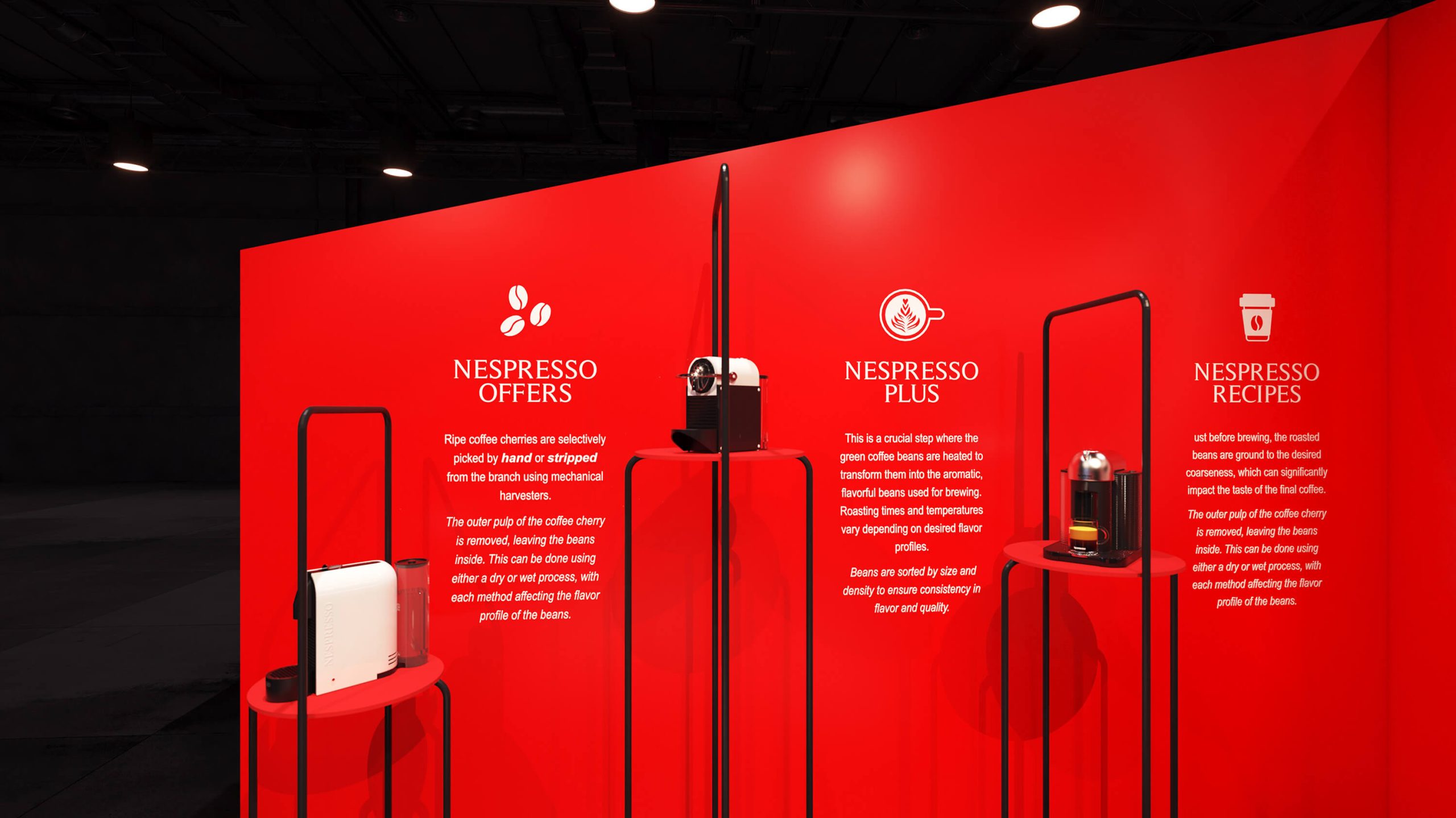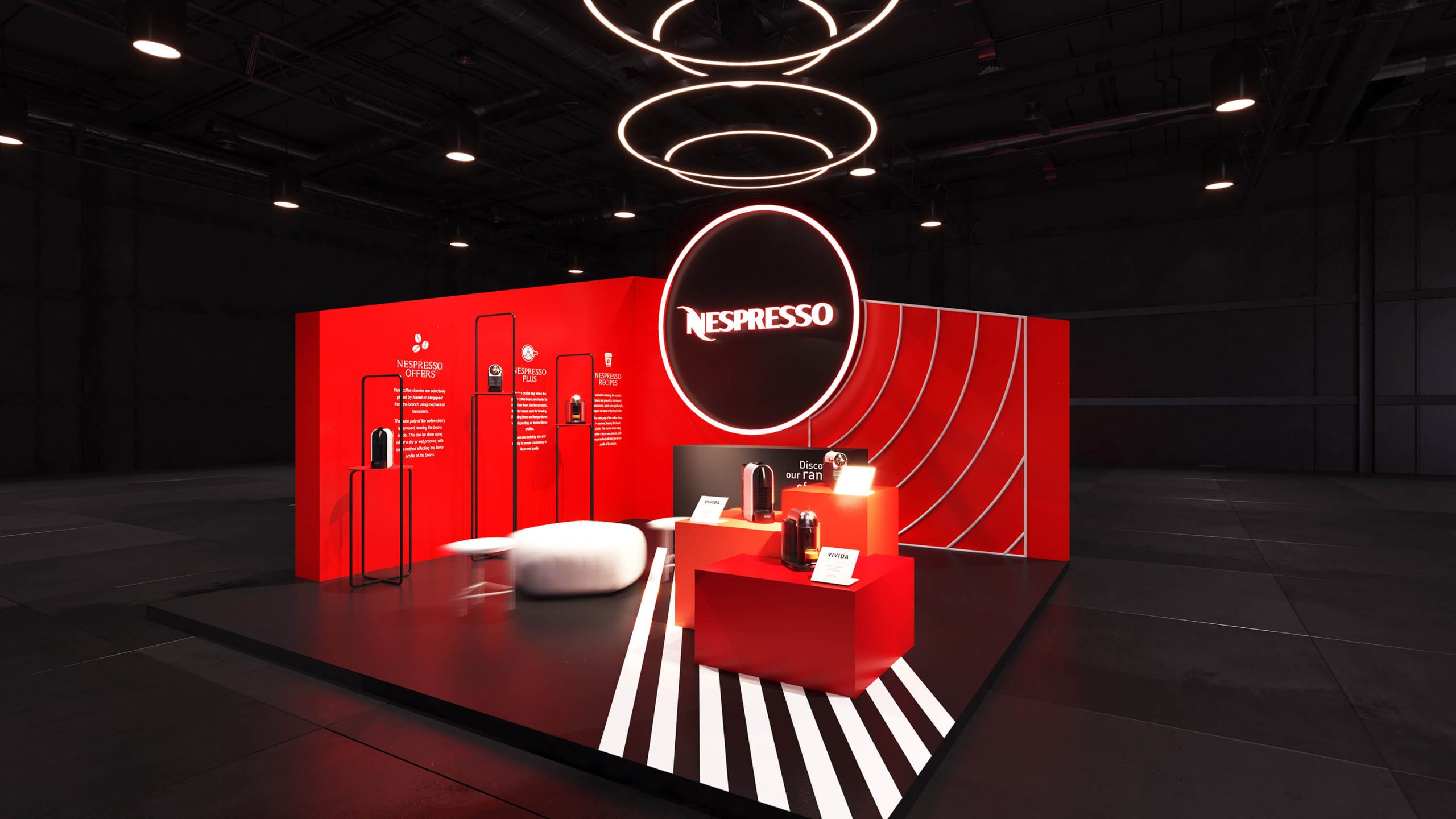 • Nespresso kahve makinesi tanıtım standı, 25 metrekarelik alanda aynı anda 10 kişiye hizmet verebilecek şekilde özel olarak tasarlanmıştır. Bu düzenleme, aynı anda etkili iletişim kurularak kahve tanıtımının sağlanabileceği bir ortam oluşturmayı amaçlamaktadır.